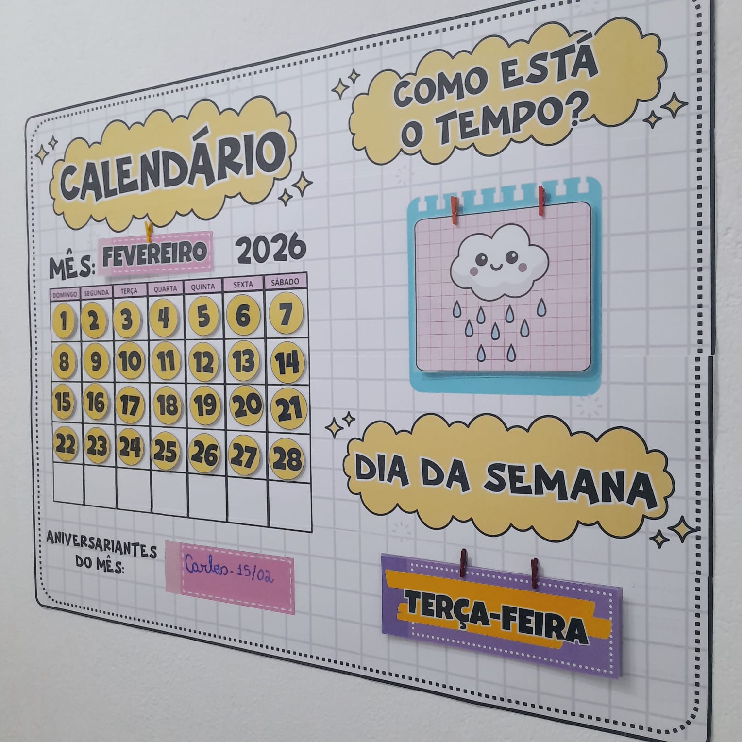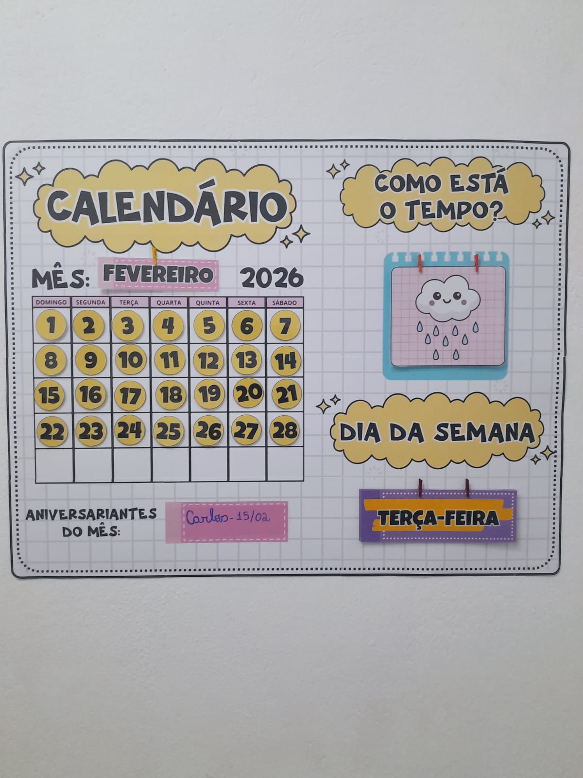 Use velcro adesivo para fixar os números no calendário